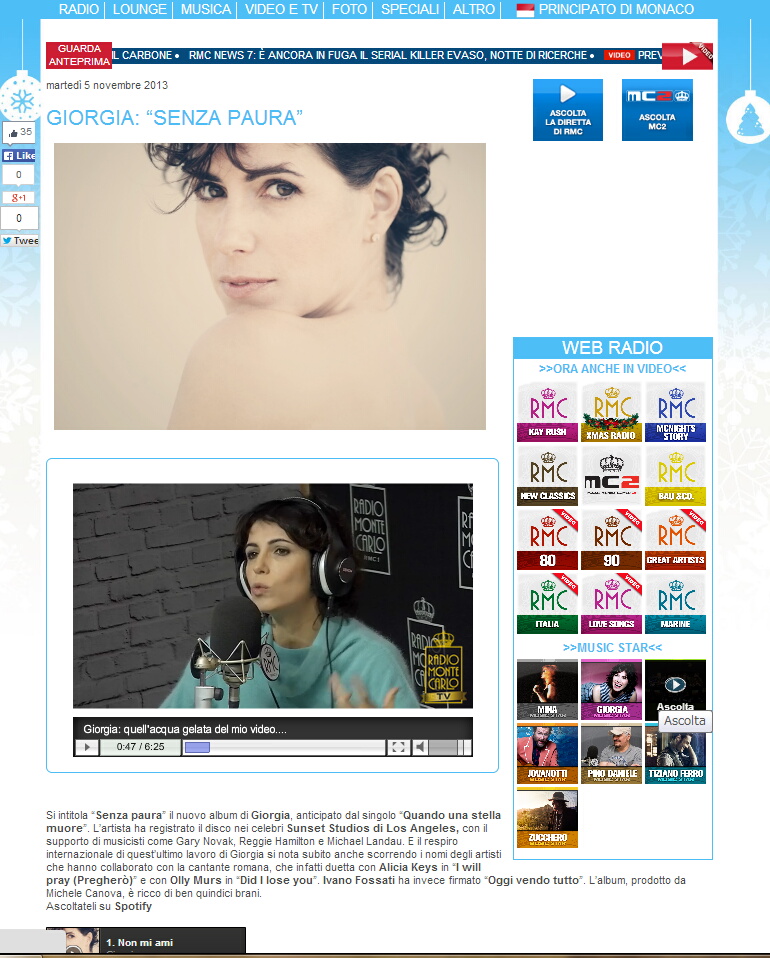 RADIO MONTE CARLO (ラディオ・モンテ・カルロ)は、1966年創業のラジオ局で、その名の通りモナコ公国=モンテ・カルロ市を発祥としているものの、 メインチャネルはイタリア語放送で、他に5つの電波チャネルを持ち、フランス語ニュースチャネル、アラブ語放送、スイス向け放送局などがあります。 また現在はイタリアのミラノ、フランスのコートダジュールにも放送スタジオがあります。音楽寄りの放送局とも言えますが、その由来の影響もあってか、 選曲内容はイタリア本国よりも汎ヨーロッパ的。アメリカ大陸の音楽も良くかかります。 しかしイタリア語放送局なので、これらインターナショナルな音楽の一角として、しっかりイタリア音楽も流してくれるので、 とてもバランスが取れており、本コラム前号の「RADIO SHOW ITALIA (ラディオ・ショー・イタリア)」 同様、イタリア音楽初心者には馴染み易い放送内容だと思います。 RADIO MONTE CARLOは、ネットアクセスできる端末から、全世界のどこでも聴くことが出来ます。 特にアプリは開発・提供していないので、各端末からブラウザでRADIO MONTE CARLOのWebサイト(http://www.radiomontecarlo.net/ )にアクセスして、下図の赤枠をクリックすれば聴取できます。 音量調整や音声停止は画面の青色枠内で行えます。 またここには流れている楽曲、アーティスト名、ジャケット写真が表示され、好きな楽曲だったら「イイネ」をクリックできるようになっています。 公式facebookページ、Twitter、Google+などSNSも充実しています。 ちなみにWeb上では「80年代」「90年代」、「ラヴソング」、「イタリア」などカテゴライズされたヴィデオチャネルもあり、 さらにはアーティスト別の映像も。この記事を書いている時点では、7つのアーティスト別アーカイヴがあり、 コールドプレイ、ミーナ、ジョルジャ、ジョヴァノッティ、ピーノ・ダニエレ、ティツィアーノ・フェッロ、ズッケロと言った面々。 1アーティストのみイギリスですが、残りは全てイタリアのアーティスト。やはりイタリア語放送局という特徴が現れていますね。 Piccola RADIO-ITALIA YoshioAntonio こと 磐佐良雄 ***** 『第104回 イタリアPOPSフェスタ』開催のお知らせ(予定の内容) ***** イタリアPOPSの話題のアルバムや最新曲、アーティストのエピソードなどを日本語解説で補足しながら、音と映像で思う存分楽しめる楽しい音楽イベントです。 日時:2014年1月11日(土)17:30~21:30(17:00開場) 会場:東京・JR亀戸駅 徒歩2分 (参加申込者のみに詳細をお知らせいたします) 最寄駅:東京・JR 亀戸駅 東口 徒歩2分 会費:1,000円(+飲食物) 席数:先着20名程度 ※お申込み&詳細は以下のサイトまで。 『ピッコラ・ラディオ=イタリア』 http://piccola-radio-italia.com/ 参加者層は大学生からリタイア世代の方まで、イタリアPOPS初心者からヘビーリスナーまで、幅広い方々が集まります。初心者やお一人様でのご参加、大歓迎です!